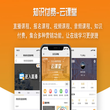 云课堂是一款以微信小程序为依托的教育直播系统,是一款全行业通用的小程序直播网课,在线观看视频软件。直播课程、报名课程、视频课程、音频课程、知识付费一网打尽,打破传统课堂,集合多种营销功能,让在线学习更便捷。