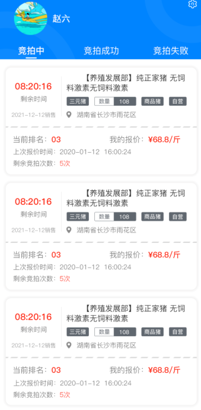项目简介:主要是针对内部所有公司及供应商的猪销售竞拍APP,所有采购商可以在APP上进行竞拍及管理。发布商可以在线发布竞拍计划及管理销售计划。
